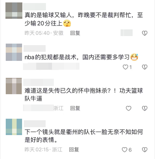 发生这一幕时,比赛时间已经只剩下了1分半钟,衢州队还落后12分,几乎已经是大局已定。但就是在这样的时间里,这名衢州17号作出了颇具争议的”抱摔“动作